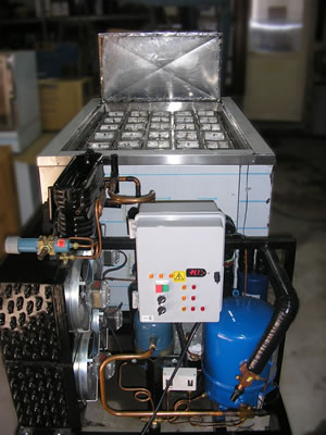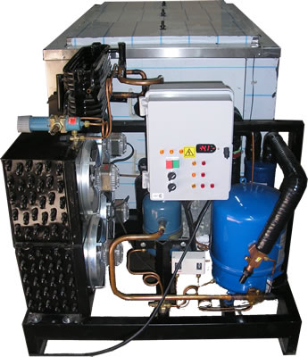 Enfriamiento por salmuera contenida con un tanque de acero inoxidable. Cubierta exterior en acero inoxidable